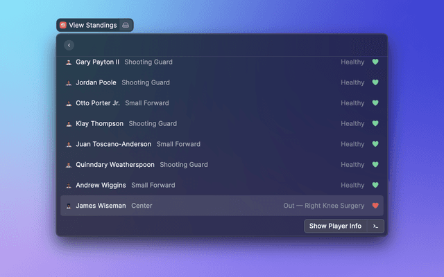 Spotify's most common features, now at your fingertips. Search for music and podcasts, browse your library, and control the playback. Glance at what's currently playing directly from the menu bar.