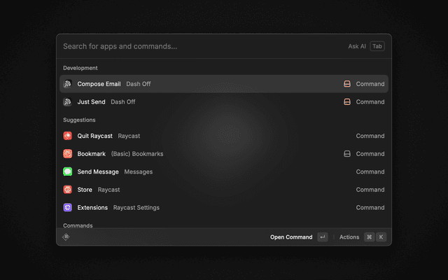 - Compose Email: This command gives you more control over the recipients, subject and body of the email. By default, it will pre-select the default recipients in the Extensions Preferences and use the default subject line.