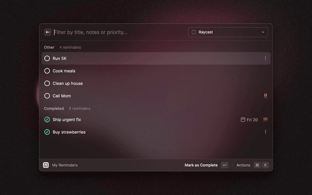 Manage Apple Reminders from within Raycast: