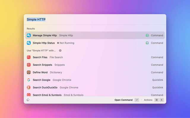 Once installed, simply trigger the Raycast command palette and search for the Simple HTTP commands.