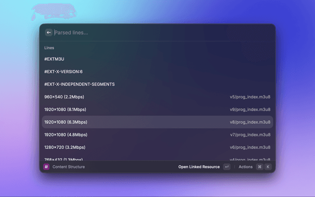 A Raycast extension for viewing and navigating HLS/DASH manifest files with keyboard navigation.